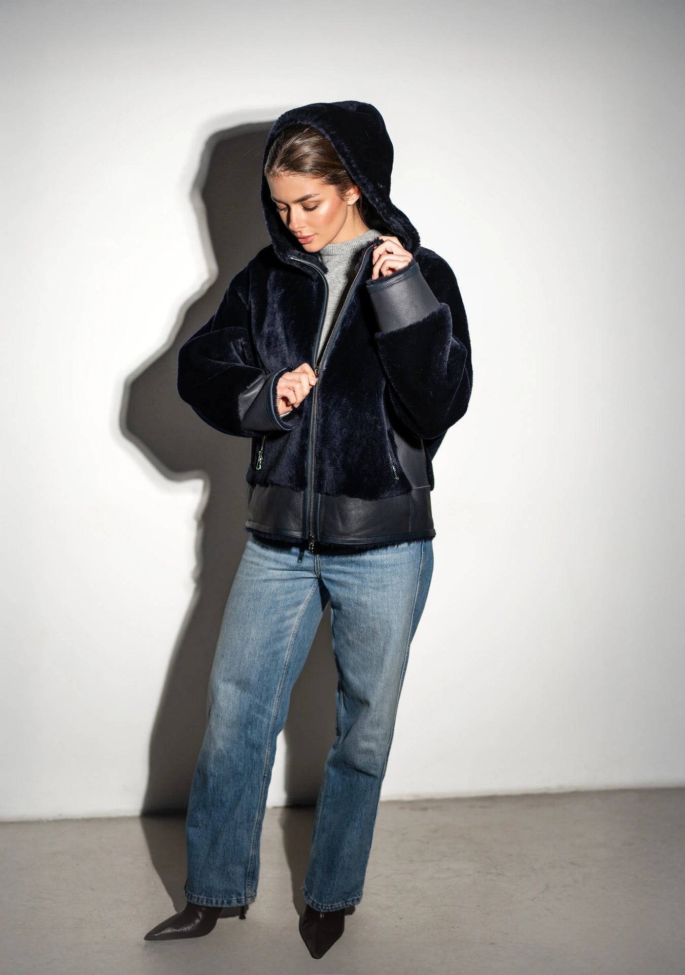 Dark navy shearling coat